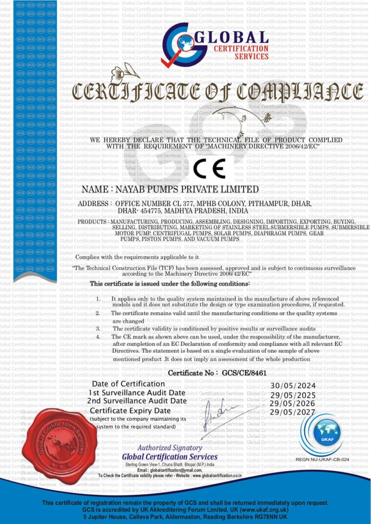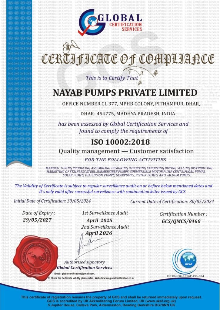 Nayab Pumps follows strict quality standards and industry certifications to ensure every product meets global performance and safety requirements. Our commitment to quality and compliance reflects in every pump and motor we manufacture.
